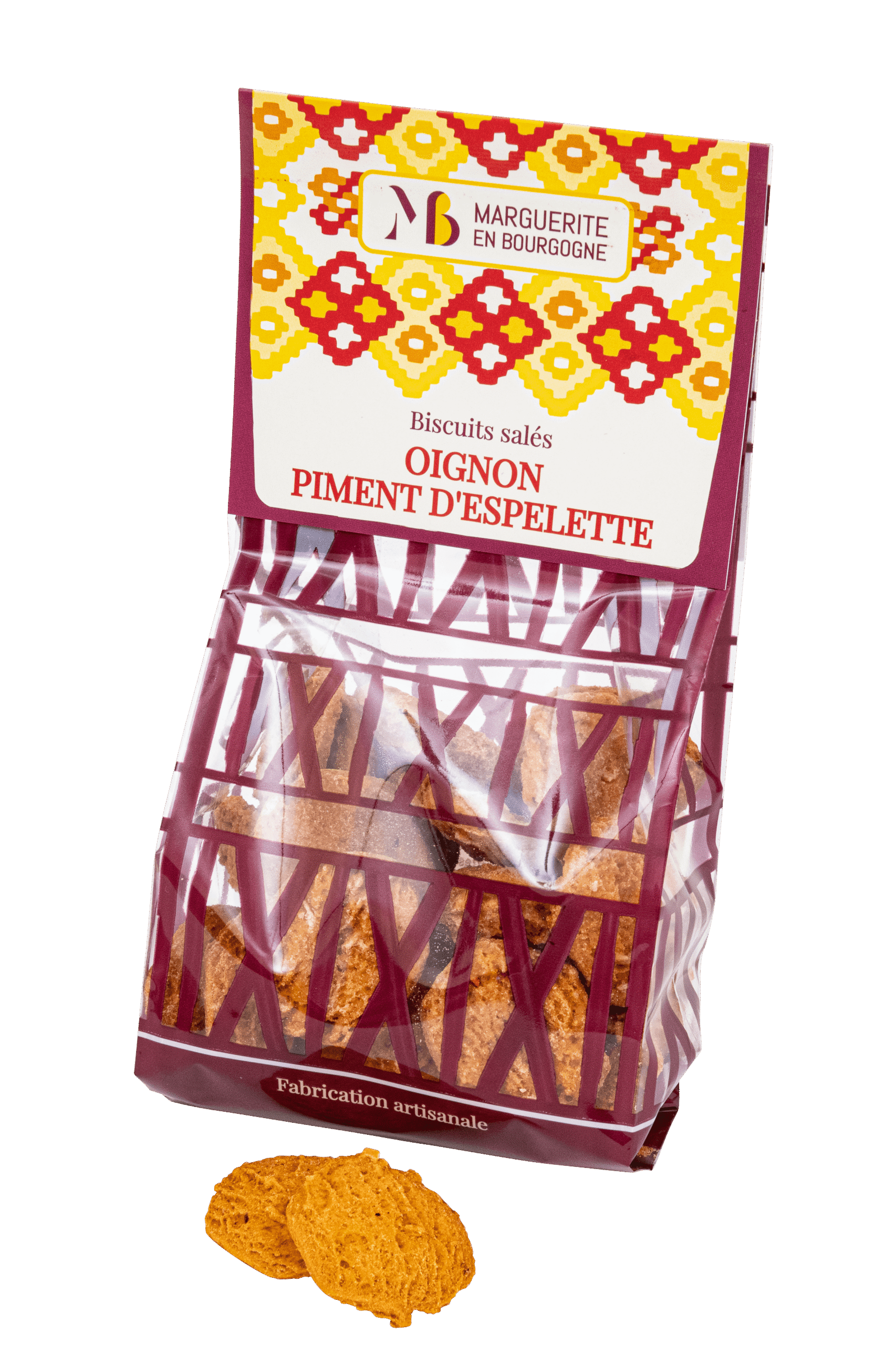 Farine BLÉ T65 *, huile de tournesol oléique*, oignon poudre* (8%), vinaigre de cidre*, flocon d’AVOINE*, ŒUF en poudre*, sel de Camargue, sucre de canne*, piment d’Espelette* (0,8%), poudre à lever : bicarbonate de sodium