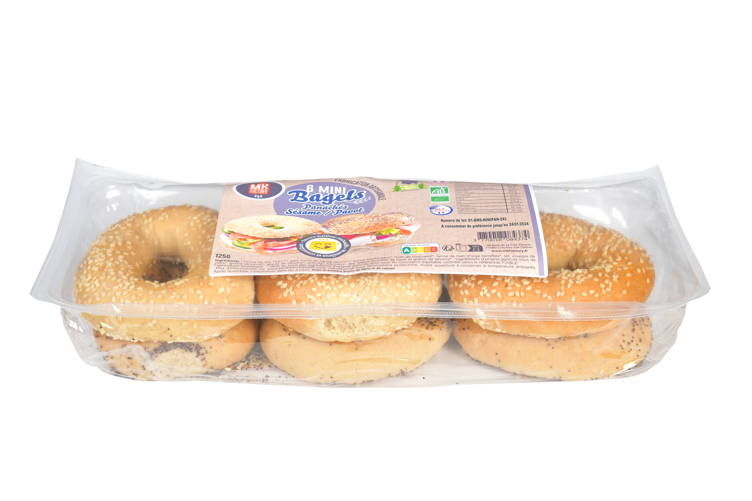 Mini bagels pochés selon la technique montréalaise authentique, panachage sésame/pavot pour satisfaire tous les goûts en format convivialité.