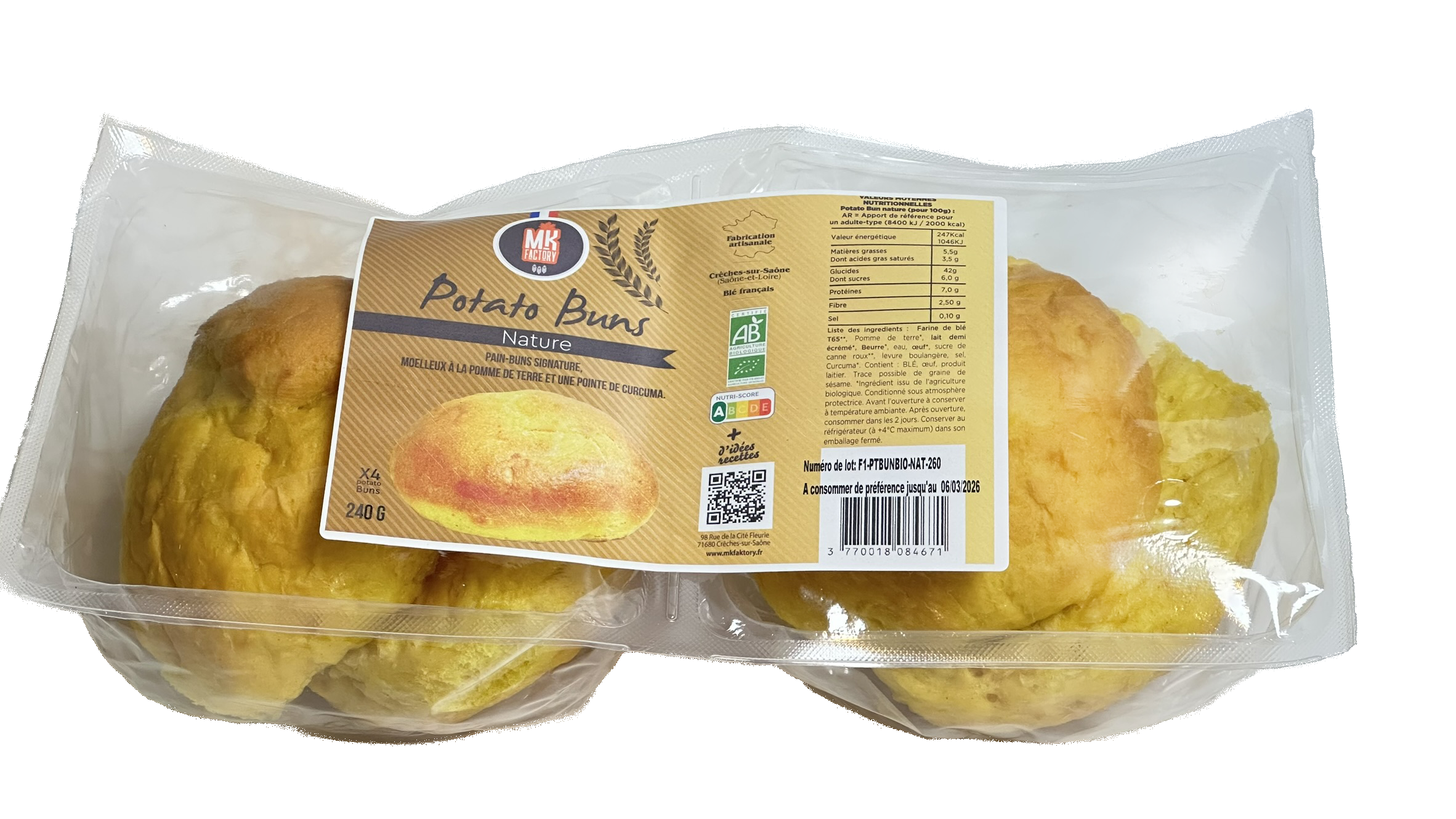 ⚖️ Poids : 240g - 4 potato buns
